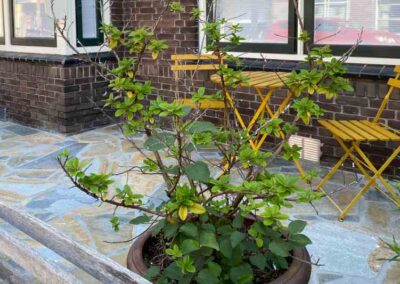 Achter het huis hebben we dezelfde stenen gebruikt om een pad aan te leggen, maar helaas hebben we hier geen foto’s van. Toch kunnen we met trots zeggen dat het project een groot succes was en dat we de klant hebben kunnen helpen om hun tuin te transformeren in een prachtige, levendige buitenruimte.