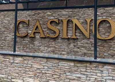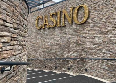 Voor dit project werd gekozen voor een bruin-bronzige muursteen. Met hun opvallende kleuren en texturen geven deze stenen de ingang van het casino een luxe uitstraling en veel sfeer.
