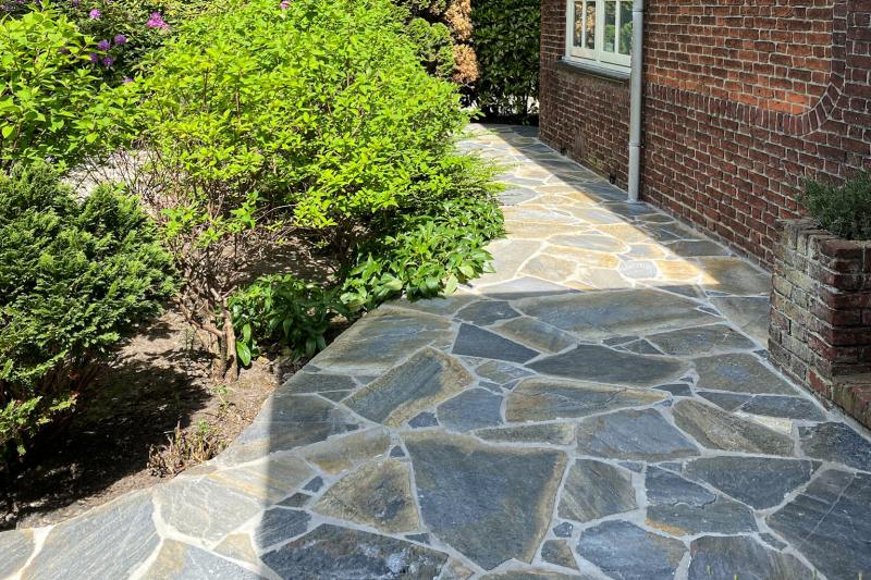 De ruwe textuur en mooie kleur van de stenen geven je buitenruimte een rustieke uitstraling die tijdloos en elegant is. Natuursteen is bovendien duurzaam, gemakkelijk te onderhouden en kan de waarde van je huis verhogen.